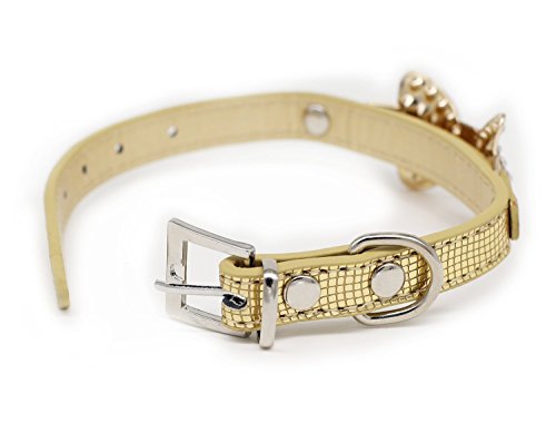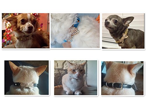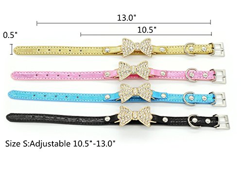 Collar Size: XS: neck size 8.0" - 10.5", wide 0.5", total length 12" S:neck size 10.5" - 13.0", wide 0.5", total length 14.5" Collar Material: high quality PU leather dogs/cats collar Collar Color:black, blue, gold, pink, silver Collar Function: If you want to dress your pets with cat/dog jewelries, our dog/cat collars with bows is good choice for you. This high quality cat/dog collar is perfect for party , wedding holiday gifts. Package includes:1* dog/cat collar rhinestone 0