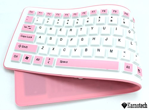 Karnotech® Foldable Silicone Keyboard USB Wired Silicon Flexible Soft Waterproof Roll Up Silica Gel Computer Desktop (103 Keys) Keyboard for PC Laptop Notebook for library work class indoor environment Green