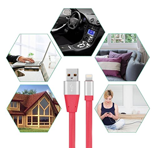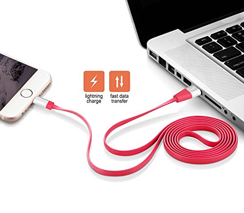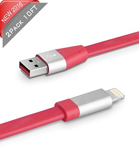 Avolare [2Pcs 10Ft] Long Lightning to USB Charging Cable, Tangle-Free Charger Cord Flat Charging Cable Syncing Cord for iPhone 6S / 6S Plus, iPhone 5S 5C 5, iPad Air/Mini, iPad 4th, iPod (Red)