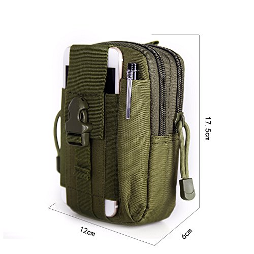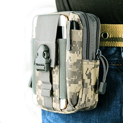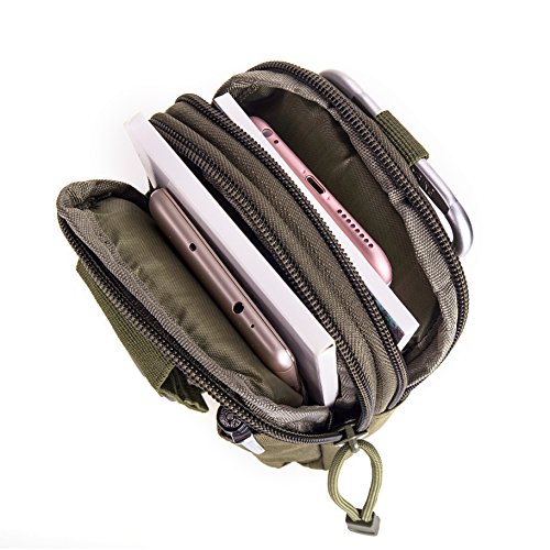 -. Feature : Qualified 1000D Nylon to improve its wear resistance and anti-scraped / Compact size 6.9inch x4.7inch x 2.4inch/17.5cm x 12cm x6cm (L x W x H) for organizing your small accessories, such as, cell phone, keychain, GPS device, pens, knife, digital cameras, medical supplies, small tools in one molle utility pouch / MOLLE system attachment straps for attaching tactical belt, tactical molle vest, backpack or , tactical bag, platform / Multi-purpose compact utility pouch for hiking, camping, travelling, hunting, bushcraft, everyday carrying stuffs / 4 Rapid Access & 1 D-ring: 2 zippered compartments ( for wallet, credit cards, keys, portable charger, cables, etc), 1 exterior phone pocket(for iPhone 6/6s/7 plus) and 1 exterior pen sheath(can hold something similar in shape as well),1 Top D-ring for attaching pack avoiding ripping off