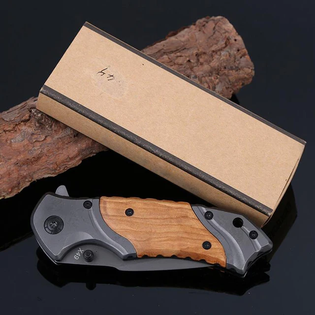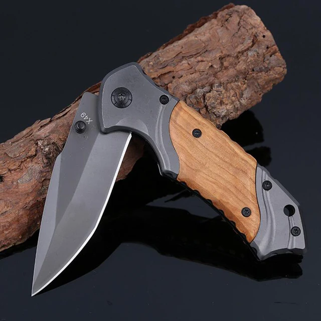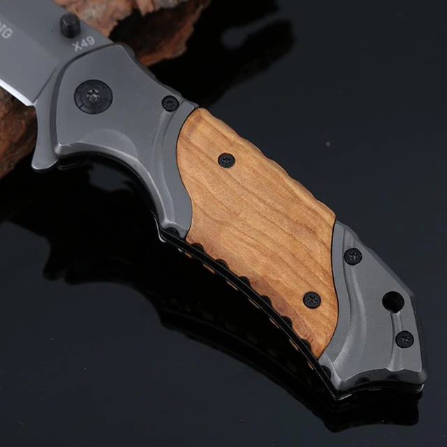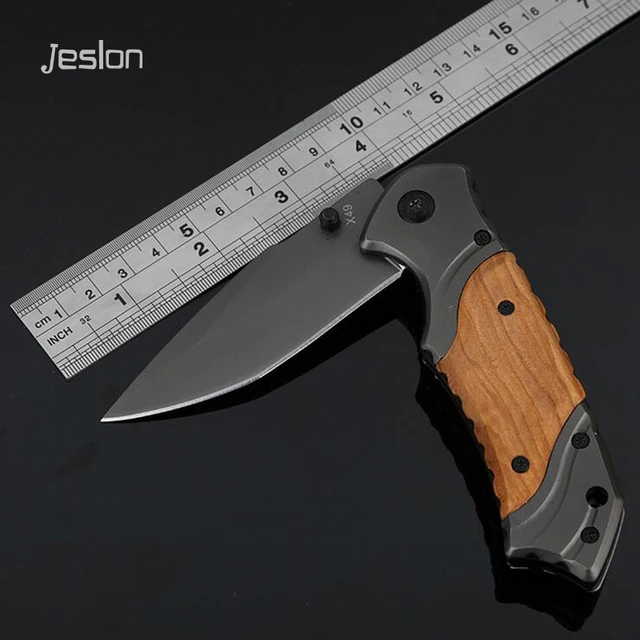 Jeslon X49 전술 접는 칼 3Cr13Mov 상당 56HRC 스틸 블레이드 나무 핸들 티타늄 포켓 생존 나이프 Huntting 나이프 EDC 도구