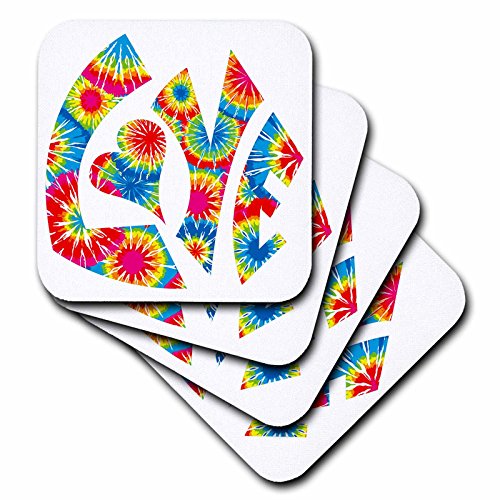 3dRose cst_173300_1 The Word Love in a Vintage Funky Retro 60S Hippie Tie Dye Pattern Soft Coasters, Set of 4