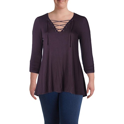 Karen Kane Women's Plus Size Ruched Sleeve Lace-Up Top