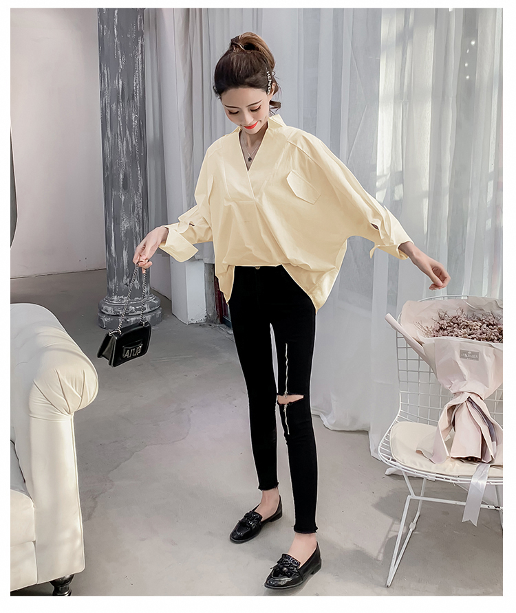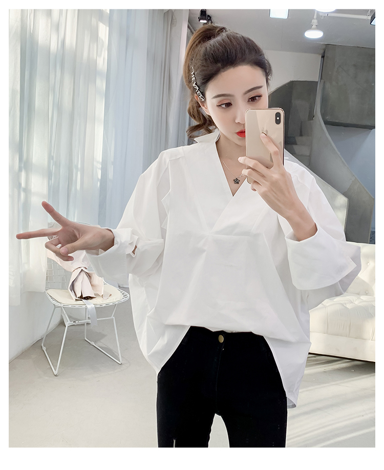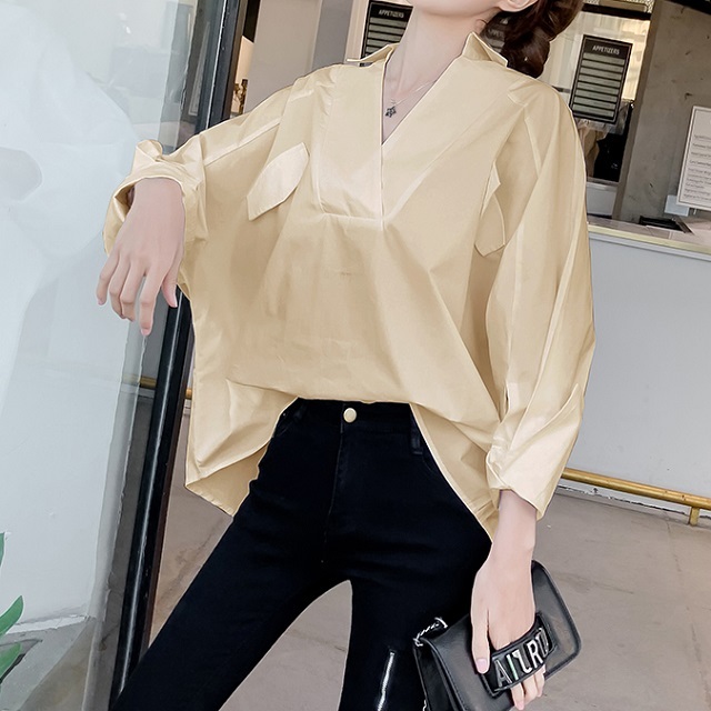 広めに開いた襟元はお顔廻りをスッキリと見せてくれ、ゆったりフォルムで着痩せ効果にも期待ができるのも嬉しいポイントです。
