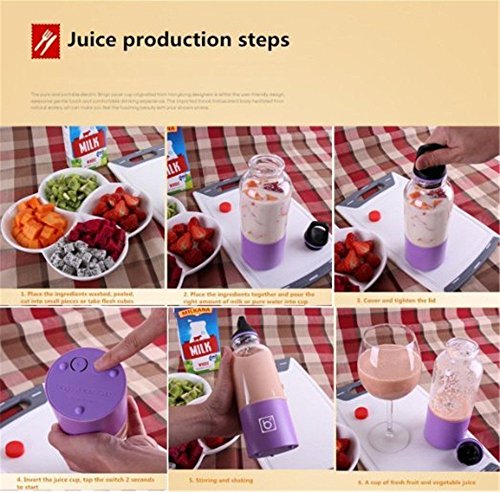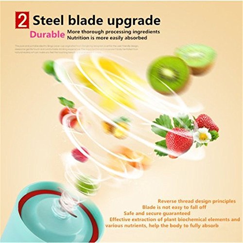 Healthy and environmental friendly, which uses food grade non-toxic material that can be used safely Mini size is portable, can be used as both juice blender and water cup Fast stirring speed that can make a cup of juice within one minute Can mix all fruits and vegetables together Material: Imported food-grade PC, ABS, silicone, stainless steel 304