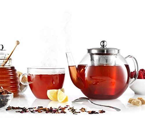 -. Title : Francois et Mimi Borosilicate Glass Tea Pot with Tea Infuser, Micro-mesh Filter, 40oz