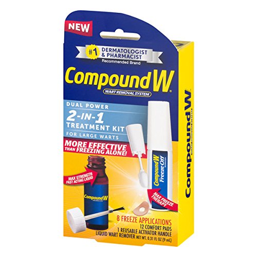 ReleaseDate : 2017-04-03 Studio : Medtech Product Inc. Publisher : Medtech Product Inc. Binding : Health and Beauty Product Description Compound W Dual Power 2 in 1 Treatment Kit is highly effective for large warts and when you are looking for a treatment that is effective and long lasting. Freeze-off quickly freezes wart, beginning the elimination process. Maximum strength fast acting liquid continues to break down the wart until eliminated. The comfort pad protects and cushions painful plantar warts. This is the #1 Dermatologist Pharmacist Recommended Brand. 0