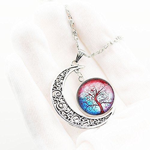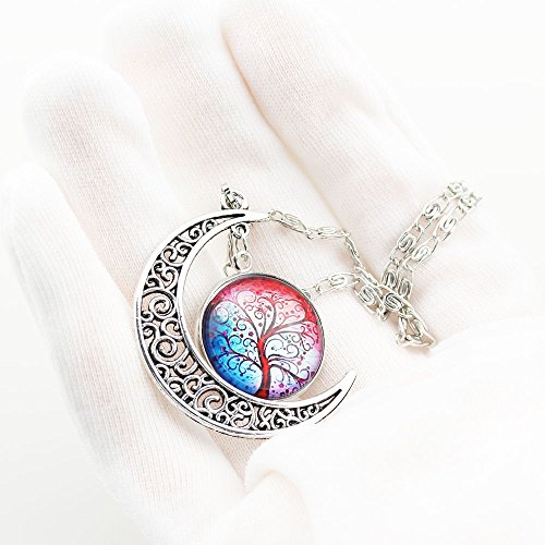-. Feature : Material: alloy & glass / Tree of life shape. Size: approx. 20mm (0.8 inches) in diameter / Moon: approx. 1.4x1.2 inches / Chain length: approx. 16.5 inches + 2 inches extender / lobster claw clasp