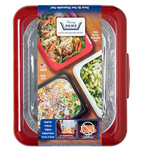 ReleaseDate : 2017-09-16 Studio : Fancy Panz Publisher : Fancy Panz Binding : Kitchen Product Description Proudly designed and manufactured in the USA, FANCY PANZ is an innovative solution to a common problem and is the perfect vehicle for dressing up and transporting your disposable foil pans. We all love the convenience of foil pans, but we do not like the instability, unsightly appearance, or the inability to stack them while transporting. FANCY PANZ solves all of these problems and more with the attractive design available in red, white, or charcoal. Simply open the frame and place your foil pan filled with your favorite dish into the FANCY PANZ, close the frame, snap on the clear lid, and you are ready to transport your casseroles, desserts, salads, chicken, anything hot or cold. Fancy Panz are designed to be used with a Typical Half Size Disposable Pan which are approximately 11 3/4 x 9 3/8 x 2 5/16. Manufacturers sizes can vary. Please cool hot foods to 200 degrees before placing in your FANCY PANZ. When it is time to serve, the clear lid fits discreetly under the pan. No longer do you have to worry about the potential accidents and messes that occur while transporting flimsy foil pans or the embarrassment of serving out of them. When it is time to leave, simply remove the foil pan and take your FANCY PANZ home, no more lost serveware! FANCY PANZ are BPA Free, and top-shelf dishwasher safe. 0