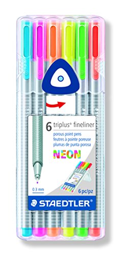 Staedtler 334 SB6NA6 Triplus Fineliner Pens (6 Pack), Neon