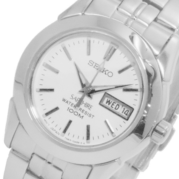 仕様クオーツ、100M防水、カレンダー(日付、曜日)、カラー:ホワイト(文字盤)、シルバー(ベルト)