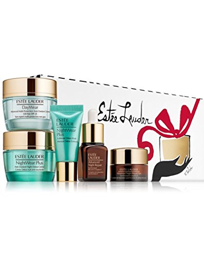 This set includes: DayWear Advanced Multi-Protection Anti-Oxidant Creme SPF 15 for Normal/Combination Skin, 15 ml NightWear Plus Anti-Oxidant Night Detox Creme, 15 ml NightWear Plus 3-Minute Detox Mask, 7 ml Advanced Night Repair Synchronized Recovery Complex II, 7 ml Advanced Night Repair Eye Synchronized Complex II, 5 ml Gift box shown may vary. All contents remain the same.
