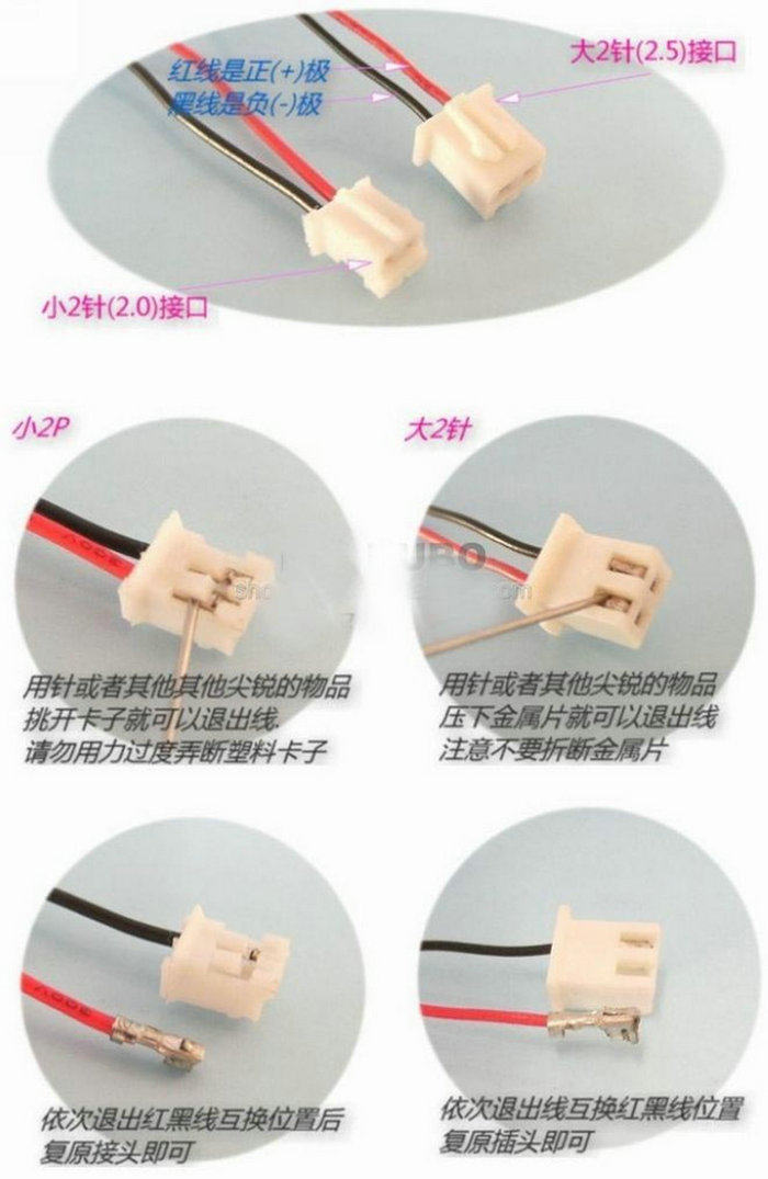 显卡风扇所使用的插头一般有2种,一种是2个孔之间距离为2毫米的2.0插头,另一种是2个孔之间距离为2.5毫米的2.5插头,2种插头不能互换,2种插头的对比如下图!左边的是2.5插头,右边的是2.0插头及插座。