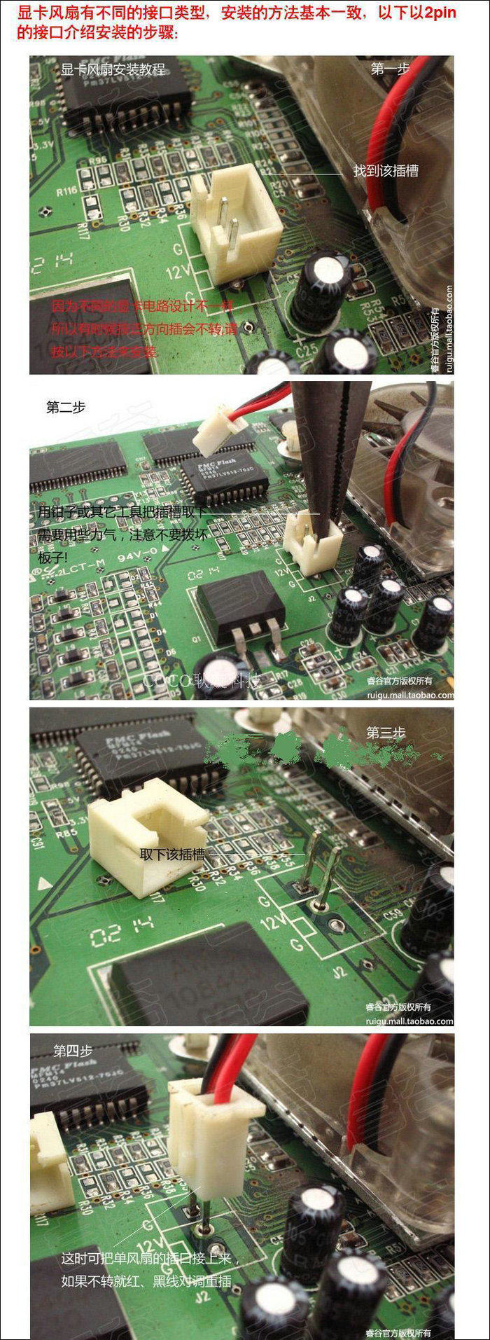 如果你遇到风扇装不上或不转,请按以下方法安装: