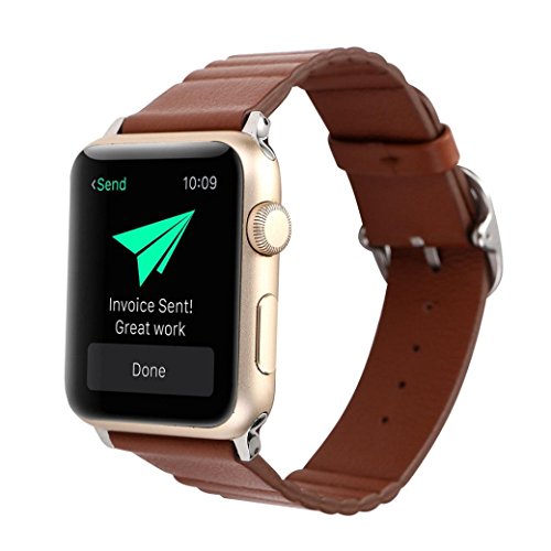 -. Feature : Premium Soft Replacement Genuine Leather Band for Apple Watch Series 1/2 38MM / Minimal design, lightweight and flexible / Wrist Circumference(38mm): 5.31-7.28 inch(135-185mm) / Compatibility: Apple Watch Series 1/2 38MM / Material: Premium Genuine Leather