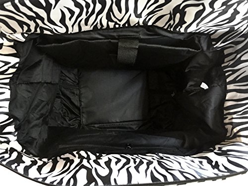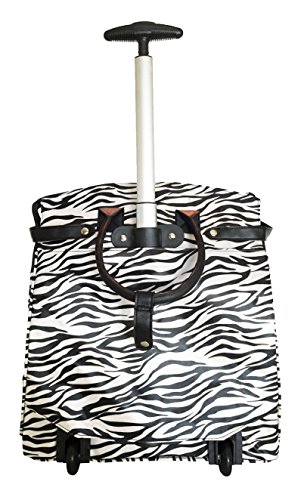 -. Binding : Electronics -. Brand : Trendy Flyer -. Color : Black, White -. Department : laptop-computer-briefcases -. EAN : 0746839981898 -. Feature : Color: Black and White / Padded laptop area can fit laptop 12.5" wide, 10" tall and 3" thick using securing velcro strap/Padded laptop area can fit laptop 12.5" wide, 14" tall and 3" thick without using securing velcro strap / Pattern: Zebra / Material: Polyester Canvas / Size: 17.5" H x 16.5" L x 9" W / Weight: 4.5 lbs / Additional Info: Height From Top of Handle to Floor with Handle Fully Extended: 36" -. PackageQuantity : 1 -. ProductGroup : PC Accessory -. ProductTypeName : CARRYING_CASE_OR_BAG -. Title : Trendy Flyer Computer/Laptop Rolling Bag 2 Wheel Case M Zebra -. UPC : 746839981898