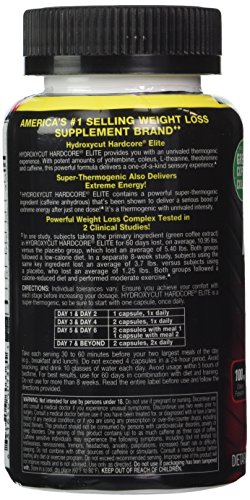 -. Binding : Health and Beauty -. Brand : Unknown -. Feature : Super-thermogenic / Lose weight / Extreme energy / Enhanced Focus / Powerful Weight Loss -. Label : MuscleTech -. LegalDisclaimer : Actual product packaging and materials may contain more and different information than what is shown on our website. We recommend that you do not rely solely on the information presented and that you always read labels, warnings, and directions before using or consuming a product. Please see our full disclaimer below. -. Manufacturer : MuscleTech -. ProductGroup : Health and Beauty -. ProductTypeName : HEALTH_PERSONAL_CARE -. Publisher : MuscleTech -. Studio : MuscleTech -. Title : Hydroxycut Hardcore Elite