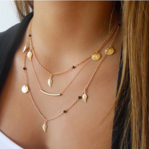 - Golden color with the Gold leaf Multilayer Alloy necklace.