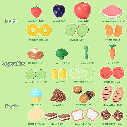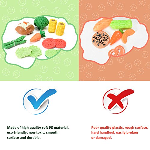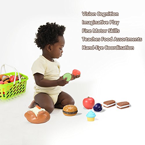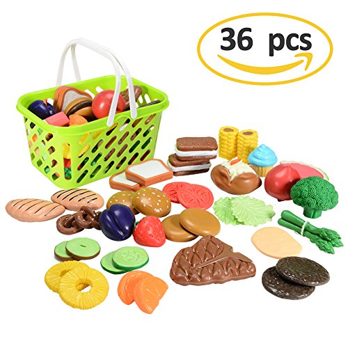 -. Feature : ENVIRONMENTALLY FRIENDLY MATERIAL--Made of high quality soft PE, eco-friendly, non-toxic, break-resistant and well-crafted for lasting durability. / 36 PIECES INCLUDED--This pretend play food set includes a shopping basket along with vegetables, fruits and pastries three kinds of food assortments, which could teach kids to name each food and categorize them. / BRIGHT COLOR & SIMULATION DESIGN--This kid's toy set is beautifully painted with vibrant colors, and adorable realistic design which could make children have an interest in food. / BENEFITS FOR YOUR BABY--Encourages fine motor skills, vision cognition, social interactions, cause-effect learning, imaginative play, role play, and storytelling etc. / PERFECT GIFTS--Good for ages 3+ kids for pretending play breakfast, lunch, and dinner kitchen games! Perfect gift for Birthday, Christmas, Festival etc.