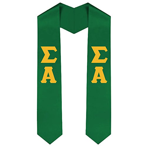Binding : Apparel Product Description Sigma Alpha sorority Greek Lettered Graduation Sash Stole. These Graduation Sashes are made of Bridal satin and measures 5" width 60" length. They come in your choice of colors: Available in black, white, light gray, pink, salmon pink, red, maroon, purple, gold, navy blue, royal blue and hunter green. Greek letters on both sides. 0