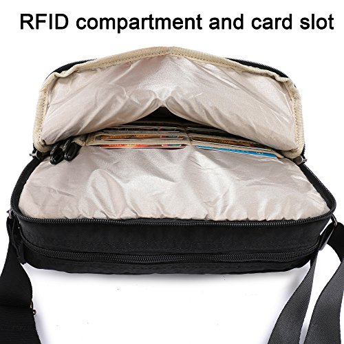 -. Feature : MATERIAL -- 100% high quality water-resistant and tear-resistant nylon with sponge liner,smooth to the touch and easy to clean. / SIZE -- It is medium cross-body bags,can meet your daily needs,the size is 8"*3.5"*9.5"(20*9*24cm),belt width is 1.5"(3.8cm) and length is 28"-53"(71-135cm),fitting for different people from teenagers up to adults (men and women).NOTE: please kindly adjust the belt until the length is the best for you. / MULTIFUNCTIONAL and LARGE CAPACITY - 1 main zipper pocket with one compartment,fits your water bottle,umbrella,iPad and other personal belongings,1 front zipper pocket with many compartments,fits your cards,pens,keys and 1 back RFID zipper pocket with 4pcs card slots,will better protect your card information and other important items. / FASHION AND SIMPLE -- Classic and simple design let the RFID shoulder bag never go out of style.Don't hesitate,believe your choose! / The shoulder handbag is perfect for day-to-day use and occasional travel/school/shopping as a daily bag and great gift for everyone.A must have for every trip and everyday.