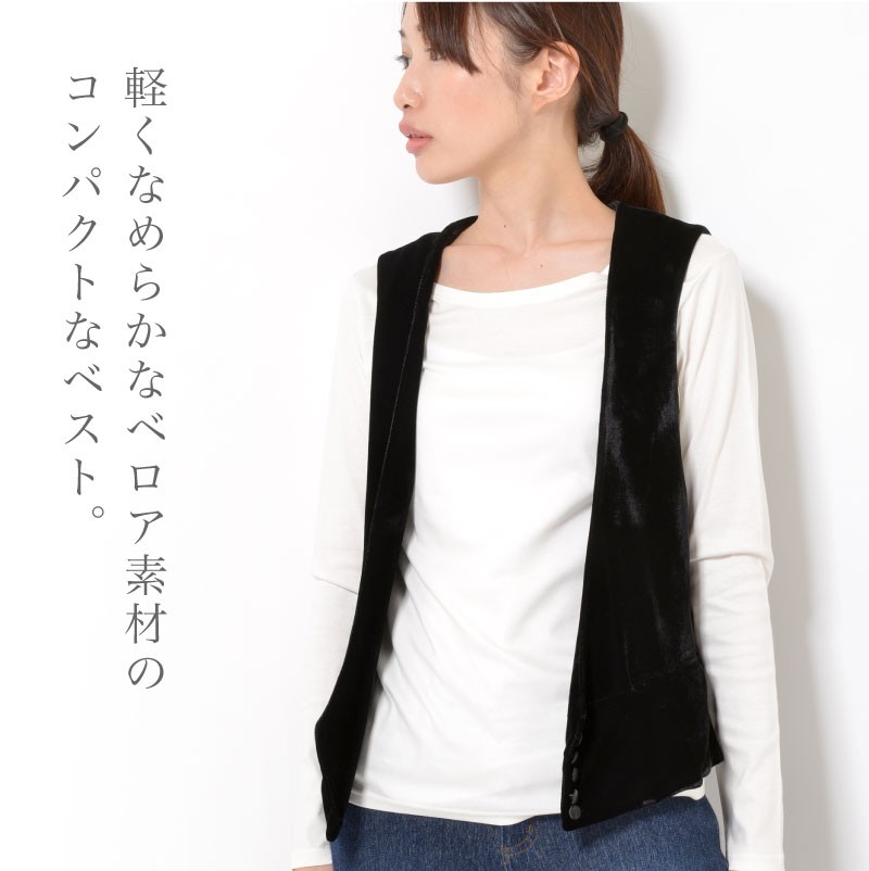 軽くなめらかなベロア素材のコンパクトなベスト。