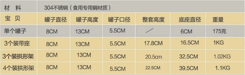 单个调味罐直径8cm*高度13cm*口径5.5cm(手工测量可能会又误差哦)