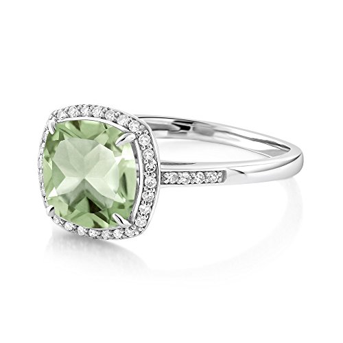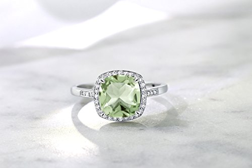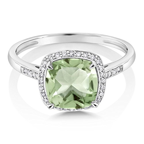 -. Title : 2.05 Ct Cushion Green Amethyst 10K White Gold Ring with Accent Diamonds (Available in size 5, 6, 7, 8, 9)