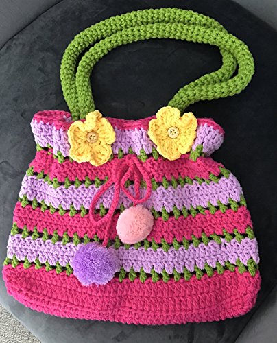 💜 A GIFT THAT WILL STAND OUT Give The Favorite Gift Received! Something Fun With Lots Of Personality. Know You Are Giving Your Special Girl A One Of A Kind, Hand Made Gift. There's Nothing Else Like It! Hand Crocheted With Love & Care, Each Pom Pom Handbag (11 inches x 9 inches - not including handle height) Is Unique Like The Girl Who Receives It. Show Your Love.