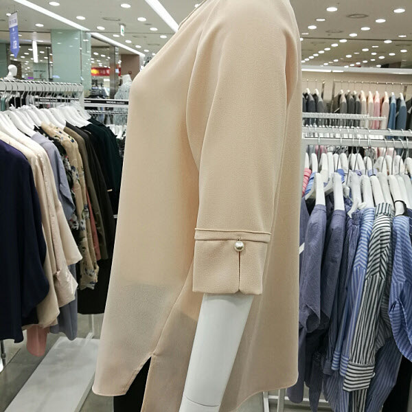 심플하고 일자 라인이라 날씬 날씬 하고 체형커버도 다 되고 단색이라 고급스럽다. 소매부분은진주장식이 있어 여성스럽고 세련되었음.