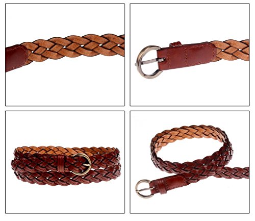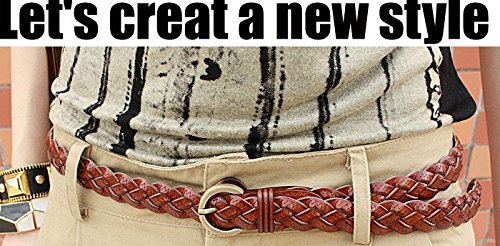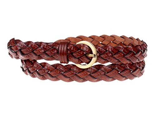 Qunson Womens 42 Inch Braided Skinny Leather Belt