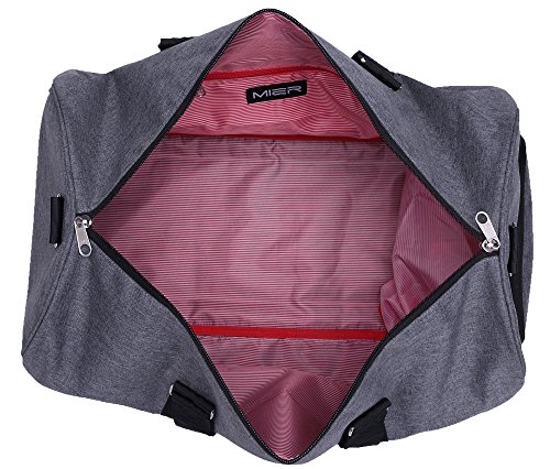 -. Brand : MIER -. Color : Grey -. Department : womens -. Feature : A great-looking, stylish nylon duffel bag with sturdy SBS zipper, well wrapped strong handles, attractive striped lining, removable and adjustable padded shoulder strap with metal buckle (not plastic) / Structure for this novel carry on bag: 1 main compartment with zipper closure, 1 zipper shoe compartment on the side, 1 inner zipper pocket / Main compartment dimensions: 20.5''(length)*11''(width)*11.4''(height), Capacity: 42L; holds all of clothes, toiletries, books, laptop with no problem. Shoe compartment dimensions: 11.8''(length)*9.5''(width)*5.9''(height), great for keeping either shoes or dirty clothes separate from everything else. / MIER overnight bag are built to withstand years of use. Easy to store when not needed. Two colors for your choose / Great size for use at the gym, vacation, weekend trips, business trips, lage, carry-on and checked in bag -. Model : D3-BN41-YLF5 -. MPN : D3-BN41-YLF5 -. PackageQuantity : 1 -. PartNumber : D3-BN41-YLF5 -. ProductGroup : Apparel -. ProductTypeName : LAGE -. Size : Medium -. Title : MIER 20" Travel Duffel Bag Carry On for Women and Men with Shoe Compartment(a Cosmetic Bag in set)