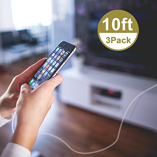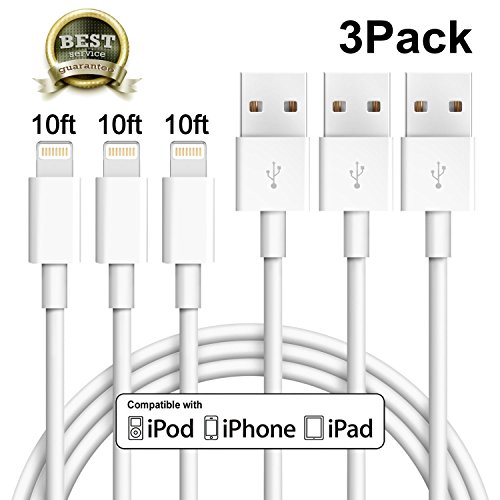 iPhone Charger Cable 10FT Atill Lightning Cable Extra Long Compatible with iPhone 8 8 Plus iPhone 7 7 Plus 6 6s 6 plus 6s plus 5 5s 5c iPa iPod & More (White, 3Pack)