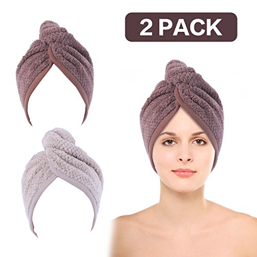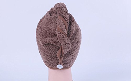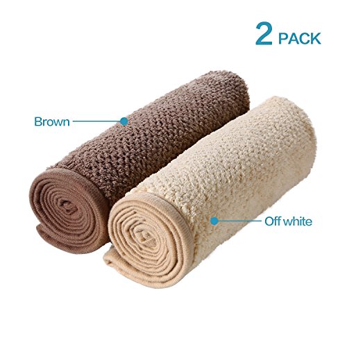 Specification: Color:off white,brown Material: Coral Fleece (Microfiber) Size: 24 3/4 inch x 9 1/2 (63cm x 24 cm) Applicable People: Women / Men / Teen Washing Tip: NO softener, bleaching or dry cleaning Inside Package: 2 Pack Microfiber Hair Towel HOW TO USE?(3 Steps) 1. Bend to make your hair hang down, put hair towel on your head (the end with button); 2. Wrap your hair with the hanging part of the towel; 3. Pull up the secure loop across your head and fix it under the secure button.