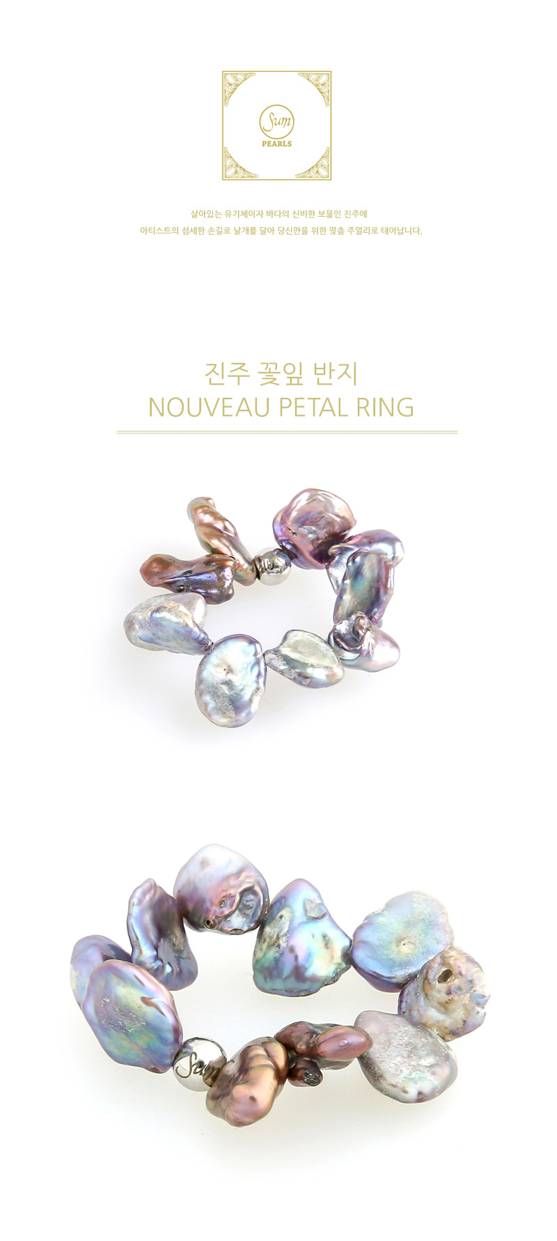 꽃잎을 형상화한 감미로운 바로크 흑진주 반지입니다. 낙원의 꽃잎으로 치장한 것 처럼 청초하만 강한 여성의 치명적인 매력을 가지게 될 것입니다.