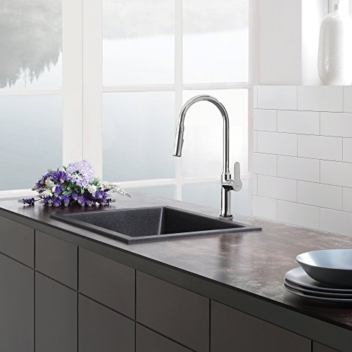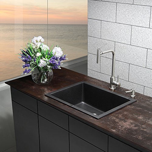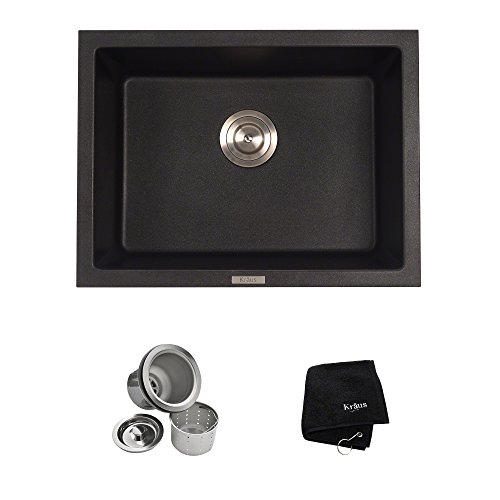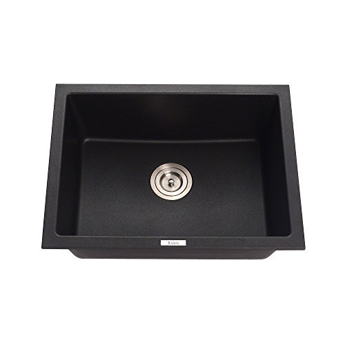 Kraus KGD-410B 24 2/5 inch Dual Mount Single Bowl Black Onyx Granite Kitchen Sink