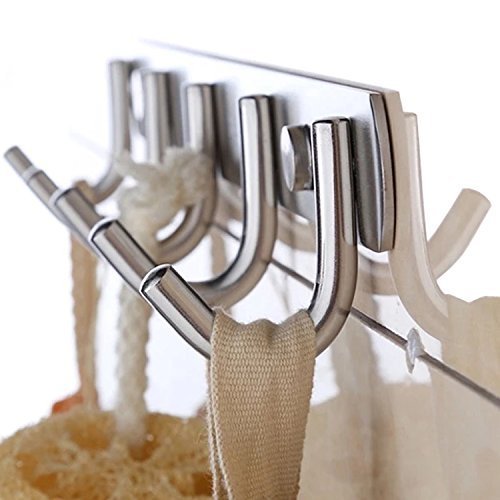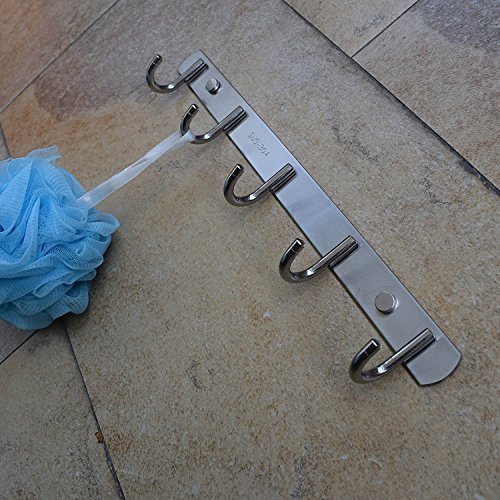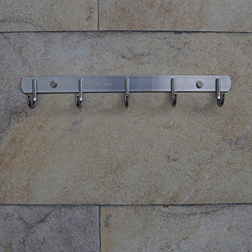 5-Hook Hook Rails Racks Cloth Hooks Wall Hanger Holder Wall Mount, Brushed Finish (5 Hooks)