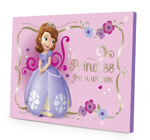 -. Binding : Toy -. Brand : Disney -. EAN : 0784857554366 -. Feature : Features unique Disney Sofia the First design with P.R.Incess graphics / LED lights inside canvas artwork will illuminate any child's room while adding to the décor / No assembly required - canvas material is easy to mount / 2 AA batteries required (not included) / Dimensions: 15.75-Inch W x 11.5-Inch H -. IsAdultProduct : 0 -. ItemPartNumber : 1000952605 -. Label : Idea Nuova - LA -. Manufacturer : Idea Nuova - LA -. Model : WK318033 -. MPN : 1000952605 -. PackageQuantity : 1 -. PartNumber : 1000952605 -. ProductGroup : Toy -. ProductTypeName : TOYS_AND_GAMES -. Publisher : Idea Nuova - LA -. ReleaseDate : 2013-06-01 -. Studio : Idea Nuova - LA -. Title : Disney Sofia the First LED Canvas Wall Art, 15.75-Inch x 11.5-Inch -. UPC : 784857554366 -. Warranty : No Warranty