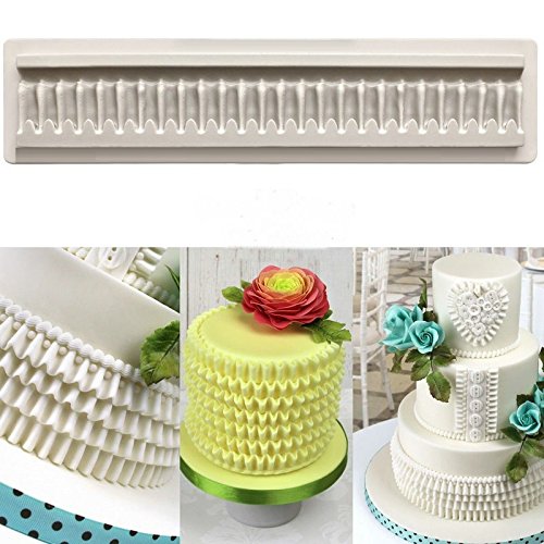 Pretty-in-Pleats Border Silicone Fondant Mold Pleated lace fondant mold for Cake Decoration, Cupcake Decorate, Polymer Clay