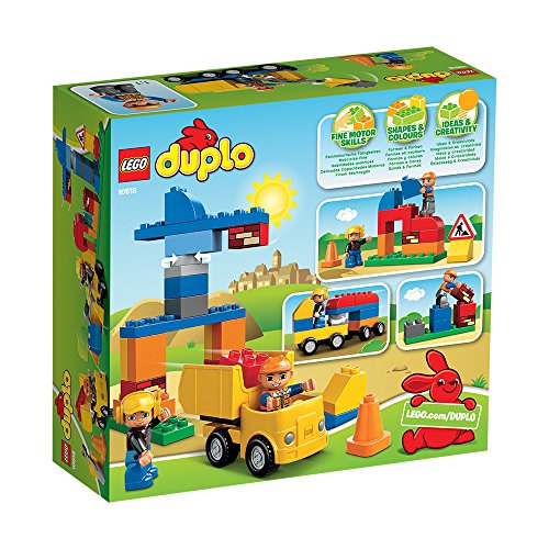 -. Feature : Enthält 2 L.E.G.O DUPLO Bauarbeiter / Mit Gebäude, Straßenschild, Kegel, kleinen Bauplatten und verschiedenen DUPLO Steinen / Mit DUPLO Lastwagen, Kran und Frontlader / Schwenk die Frontladerschaufel nach oben! / Belade den Kipplaster!