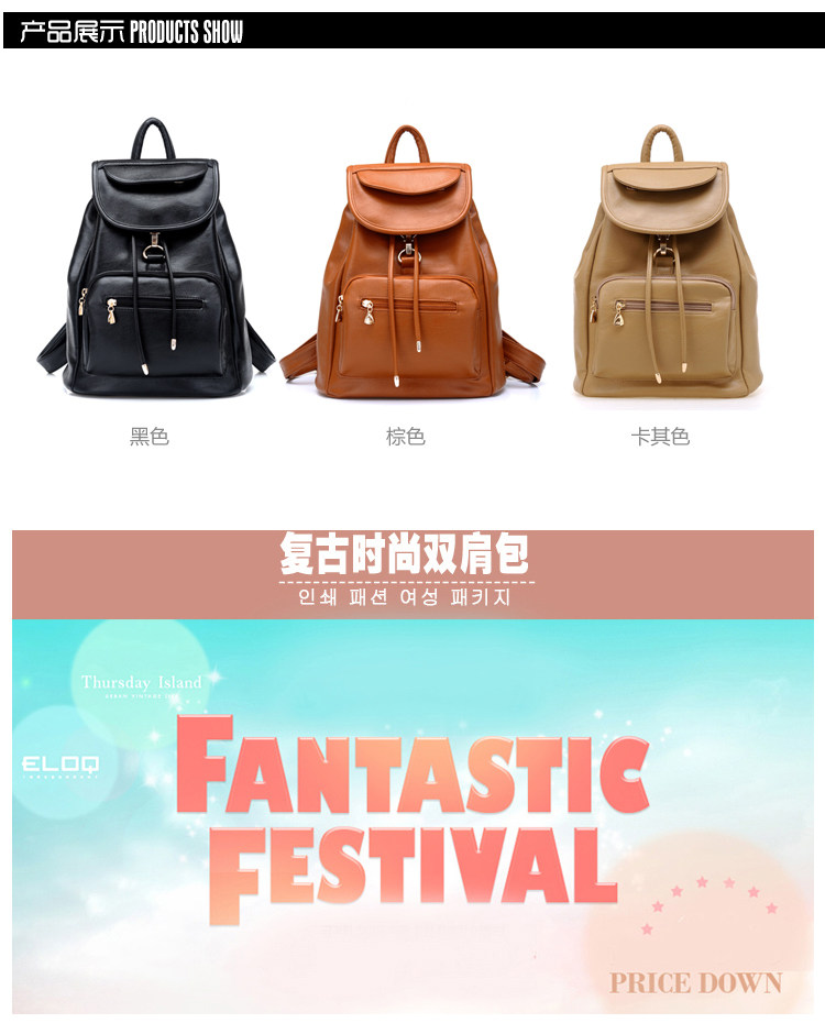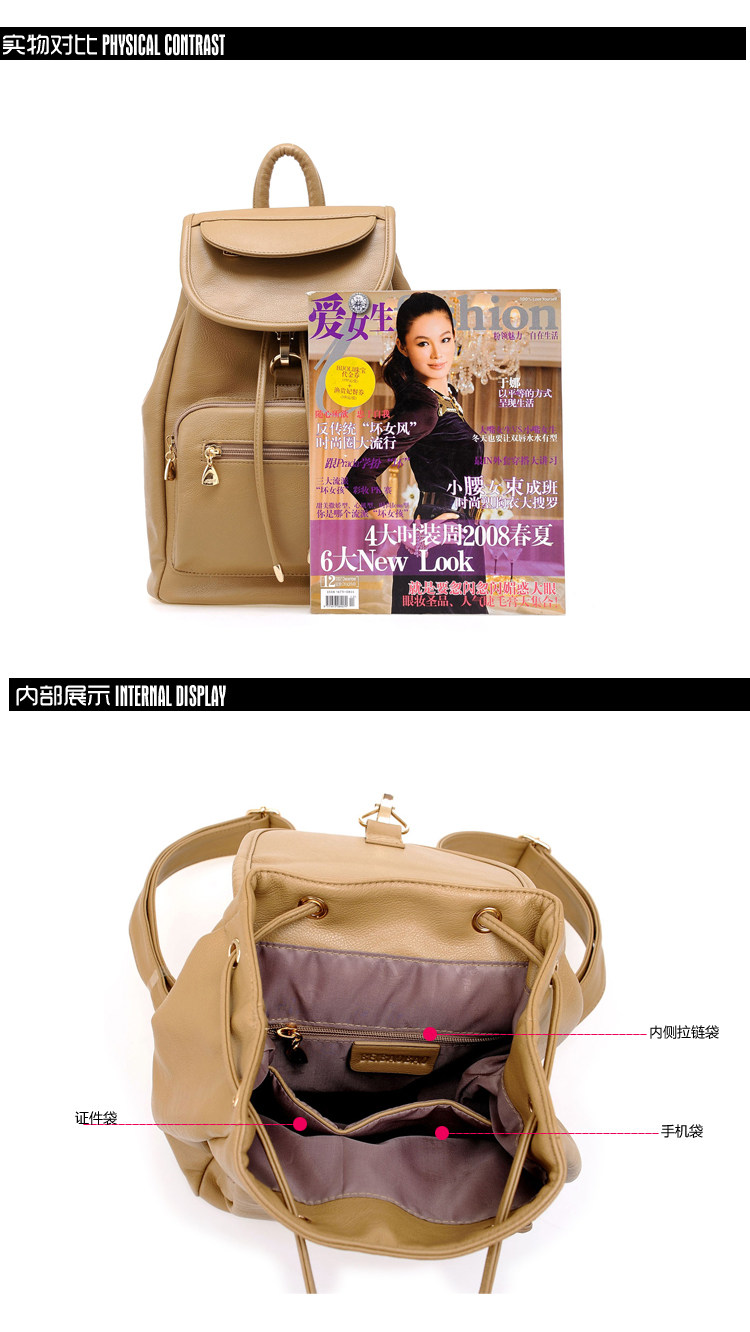 韩版时尚双肩包学院风。内部1个拉链袋,2个置物袋