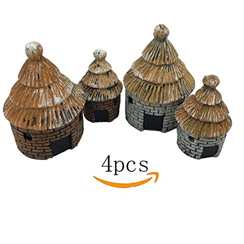 Tophappy 4 Pieces Miniature Fairy Garden House Statues for DIY Fairy Garden Dollhouse Décor
