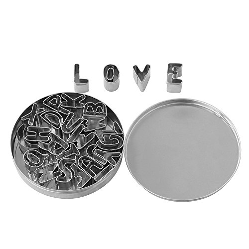 Homgaty 26 Alphabet Letters Cookie Cake Cutter Set with Tin Box Stainless Steel Baking Tool Kitchen DIY