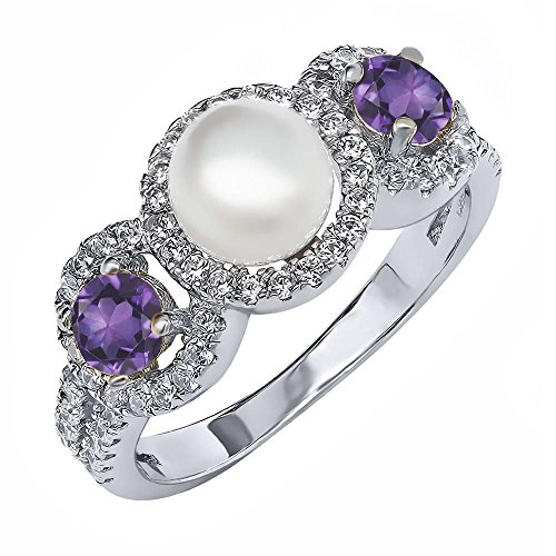 -. Feature : HIGH QUALITY: Cultured Freshwater Pearl and Purple Amethyst Crafted in 925 Sterling Silver Ring / PERFECT - For gifts for birthday, anniversary, holidays, stocking stuffers, graduation, Christmas, Valentine's Day, Mother's Day, Thank You or simply "Thinking of You". / CARAT TOTAL WEIGHT - 1.30 CT (This item is proudly custom made in the USA) / TOTAL SATISFACTION GUARANTEE - When you order today, you're protected. The item comes with a No questions asked money back guarantee combined with world class customer service. Free Return and Refund and Lifetime Warranty and Free Second Day Delivery for Amazon P.R.Ime! / Gemstones may have been treated to improve their appearance or durability and may require special care.