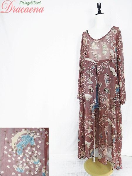 Ladies ブランドGail Garner カラー赤茶 メール便不可 コンディション★★★ 素材レーヨン 表記サイズL スタッフコメント裏地なし。透け感あり。 実寸サイズ 着丈 134 cm 身幅 54 cm 肩幅 42 cm 袖丈 66 cm スリット 97 cm ※ウエスト・ヒップ以外は平置き採寸