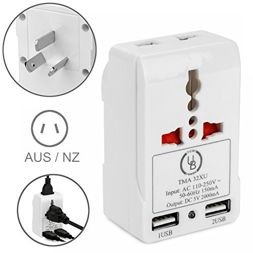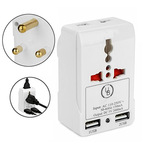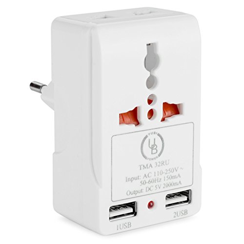 Yubi Power TMA32RU Travel Adapter with 2 Universal Outlets and 2 USB 2.0 Ports - Built in Surge Protector and Light Indicator