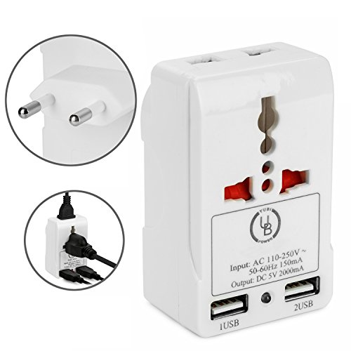 Yubi Power TMA32RU Travel Adapter with 2 Universal Outlets and 2 USB 2.0 Ports - Built in Surge Protector and Light Indicator - Plug Type C works with France, Germany, Russia, Spain and more!