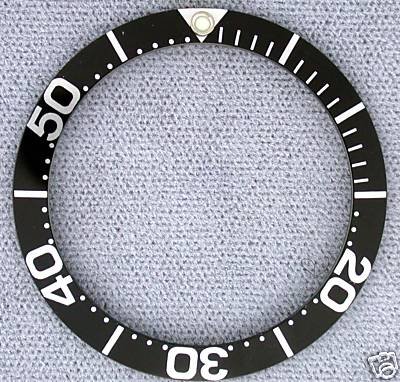 The item for sale is a brand new aftermarket Swiss bezel insert in black with silver font. It fits Omega Seamaster full size.