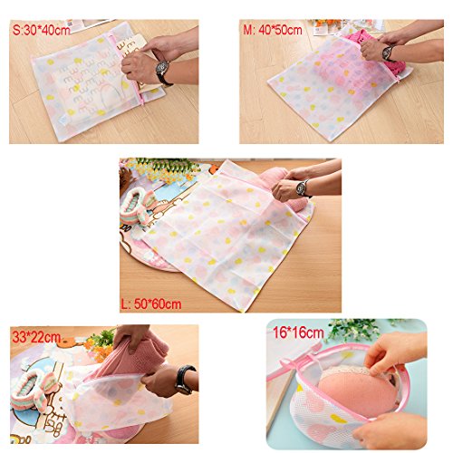 MEELINO 5 PCS MESH NET LAUNDRY WASH FLOATING BAG WITH ZIPPER PRINT FOR BRA LINGERIE GARMENT WASHER DRYER MACHINE WASHING PROTECT UNDERWEAR HOSIERY SOCK BABY CLOTH TRAVEL LAUNDRY BAG ORGANIZATION SET