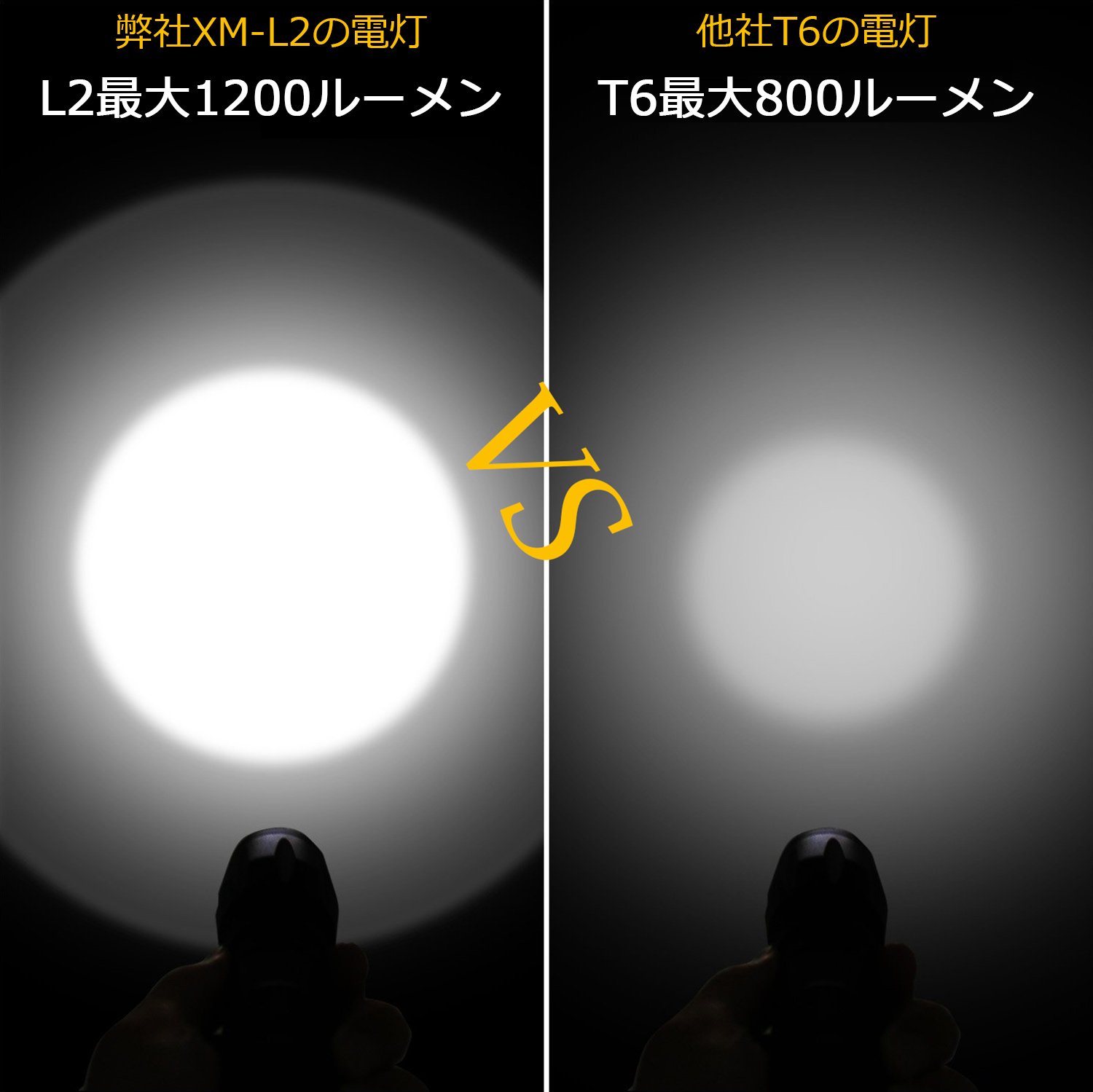 Lumen: L2 (1200lm)> T6 (800lm)> Q5 (500lm) (It is theoretical value, it may be slightly different from measurement place, equipment, environment etc.)